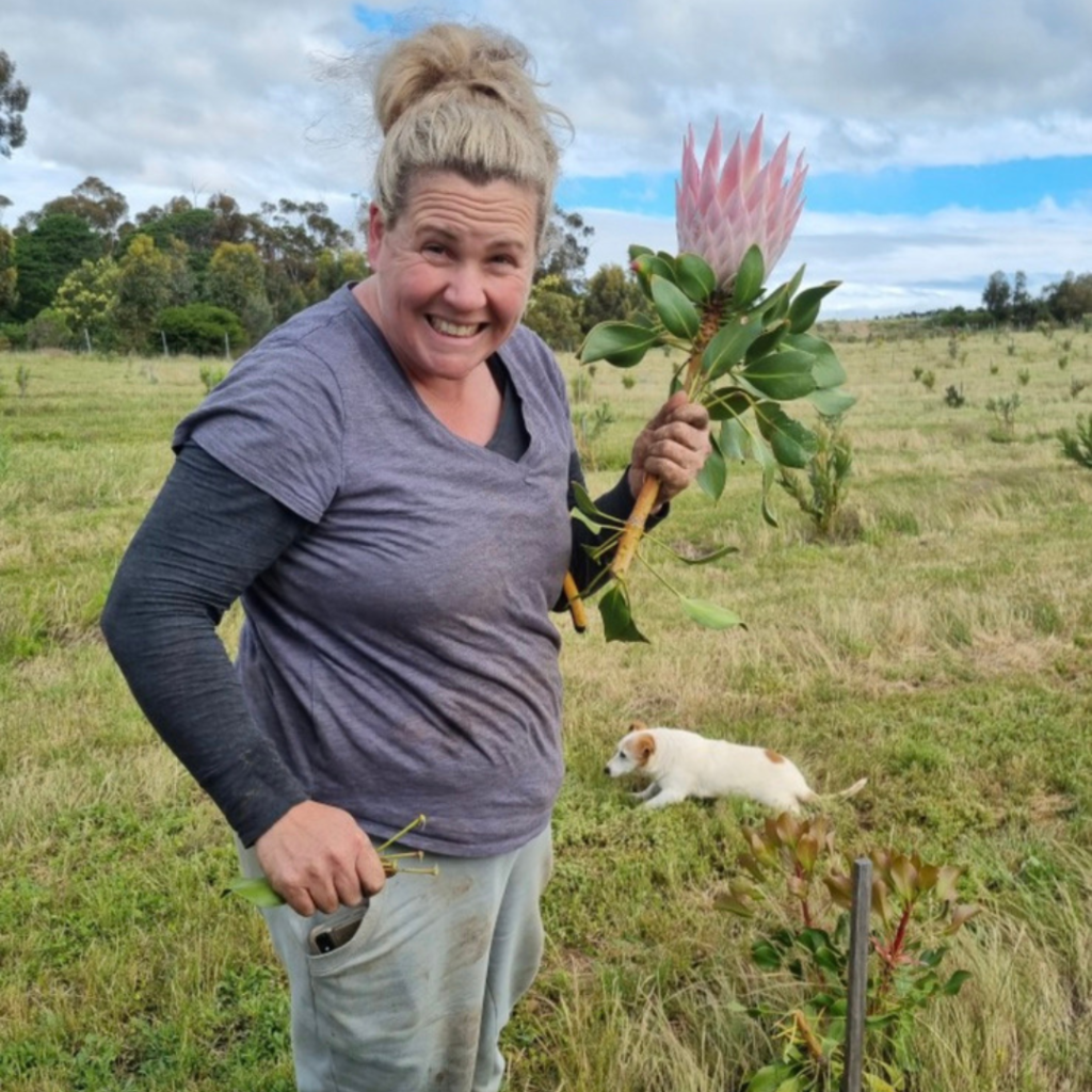 After planting our truffle trees, 4 years seemed a long time to sit on our hands so we started a “let’s see what survives in our soil” experiment which led to us planting a test patch of Australian Natives as well as some South African wildflower varieties like proteas.